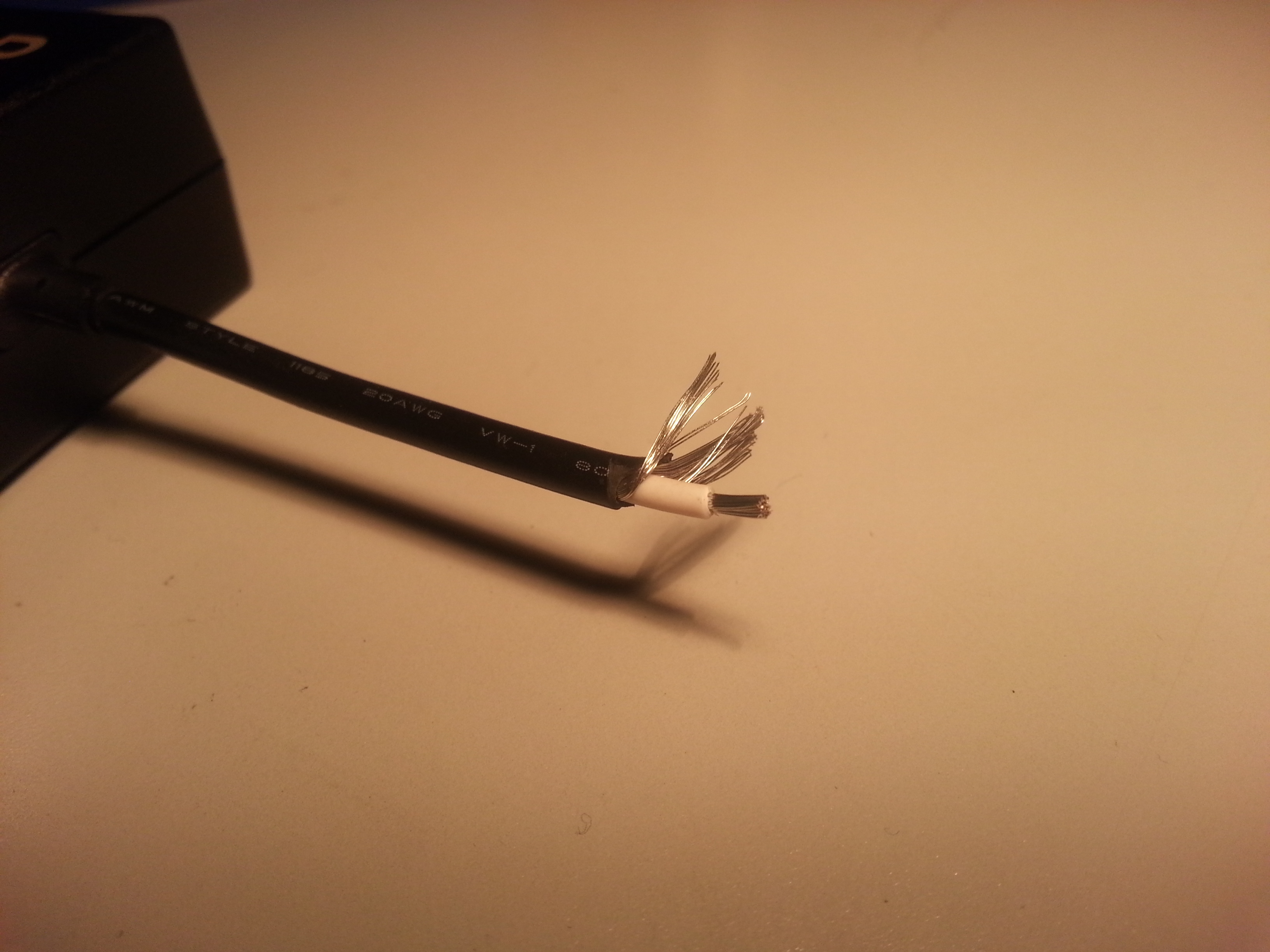 I got a NUC5i5RYK for testing, and put 16GB (2x 8gb So-dimm) memory and a 80gb m.2 SSD drive into it. I installed Linux Mint for testing, but these will run windows 7 and 10 without problem. I did a quick test on the machine to make sure everything was working, then I cut the cable off the power brick. This is where the first surprise showed up. The power supply cable is a simple coax type cable. It had a foam dielectric, with a non braided shield and a multi threaded conductor center line. This was fairly easy to change into Anderson Powerpole connectors with a little bit of heat shrink.